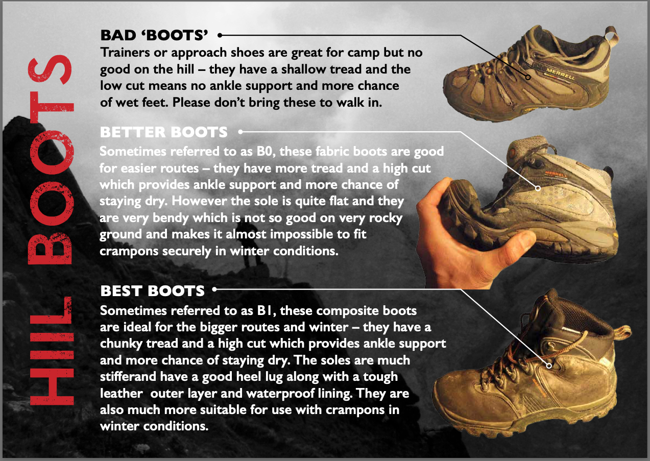 Experienced, authorised adults will be in charge of each walking group (4 – 8 people) and the informal training will include [winter] walking skills, route planning, route choice, navigation, leadership and teamwork. If there are winter conditions, specialist equipment such as ice axes and crampons will be provided as necessary (you may bring your own but it will be checked).